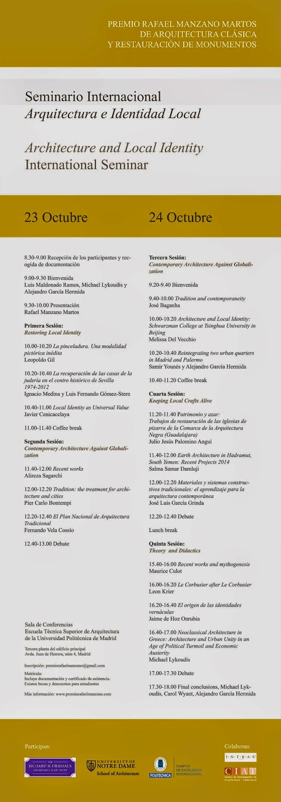 Organizado por el Premio Rafael Manzano Martos gracias a la generosidad de la Richard H. Driehaus Charitable Lead Trust, la colaboración de la Escuela de Arquitectura de la Universidad de Notre Dame (Indiana, EEUU) y la Escuela Técnica Superior de Arquitectura de la Universidad Politécnica de Madrid y el apoyo de INTBAU España (Internacional Network for Traditional Building Architecture and Urbanism) y el Centro de Investigación de Arquitectura Tradicional (CIAT) de la Universidad Politécnica de Madrid.