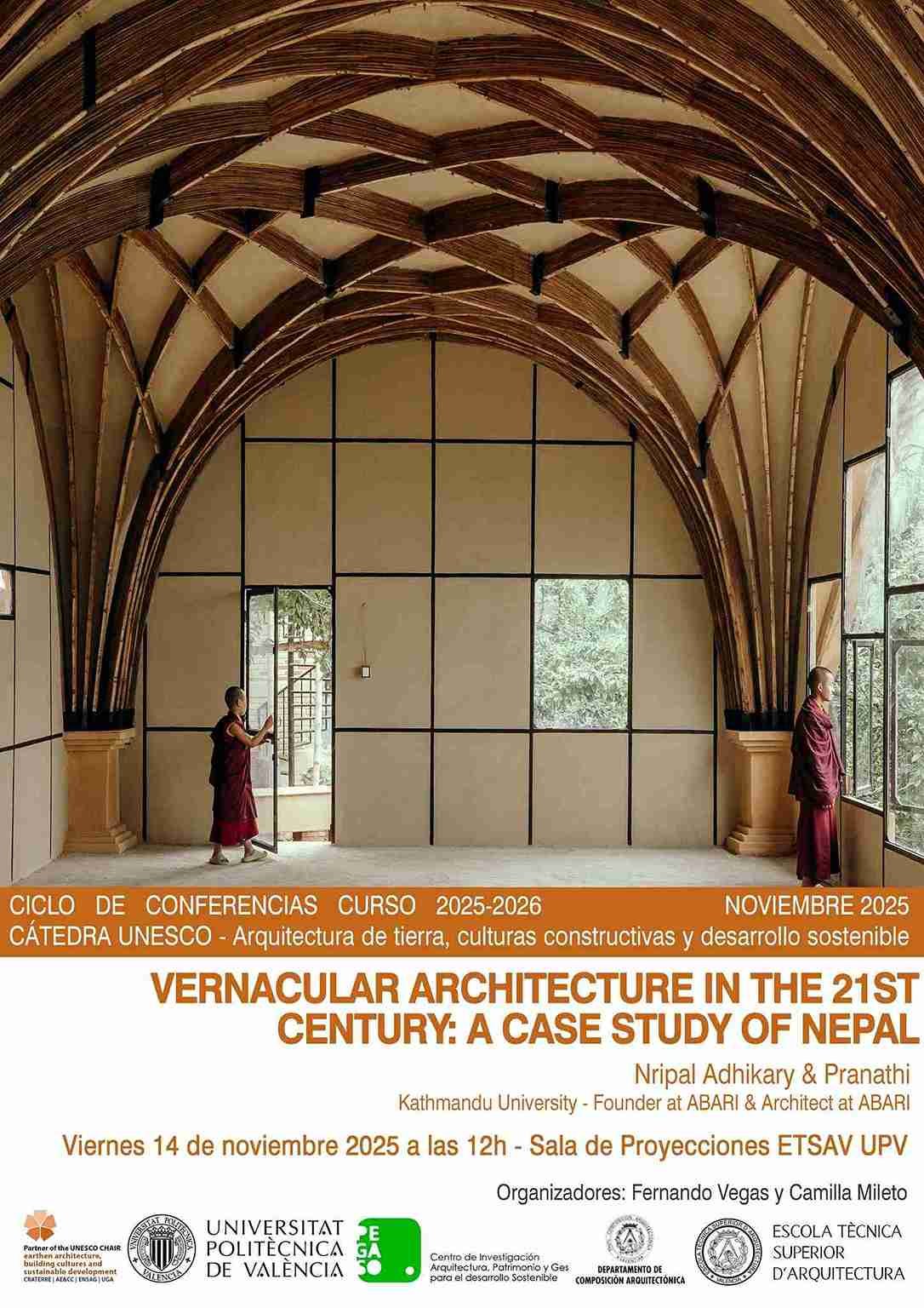 La ponencia, titulada “Vernacular architecture in the 21st century: A case study of Nepal”, fue impartida el 14 de noviembre de 2025 por Nripal Adhikary & Pranathi (Kathmandu University, Founder at ABARI & Architect at ABARI).