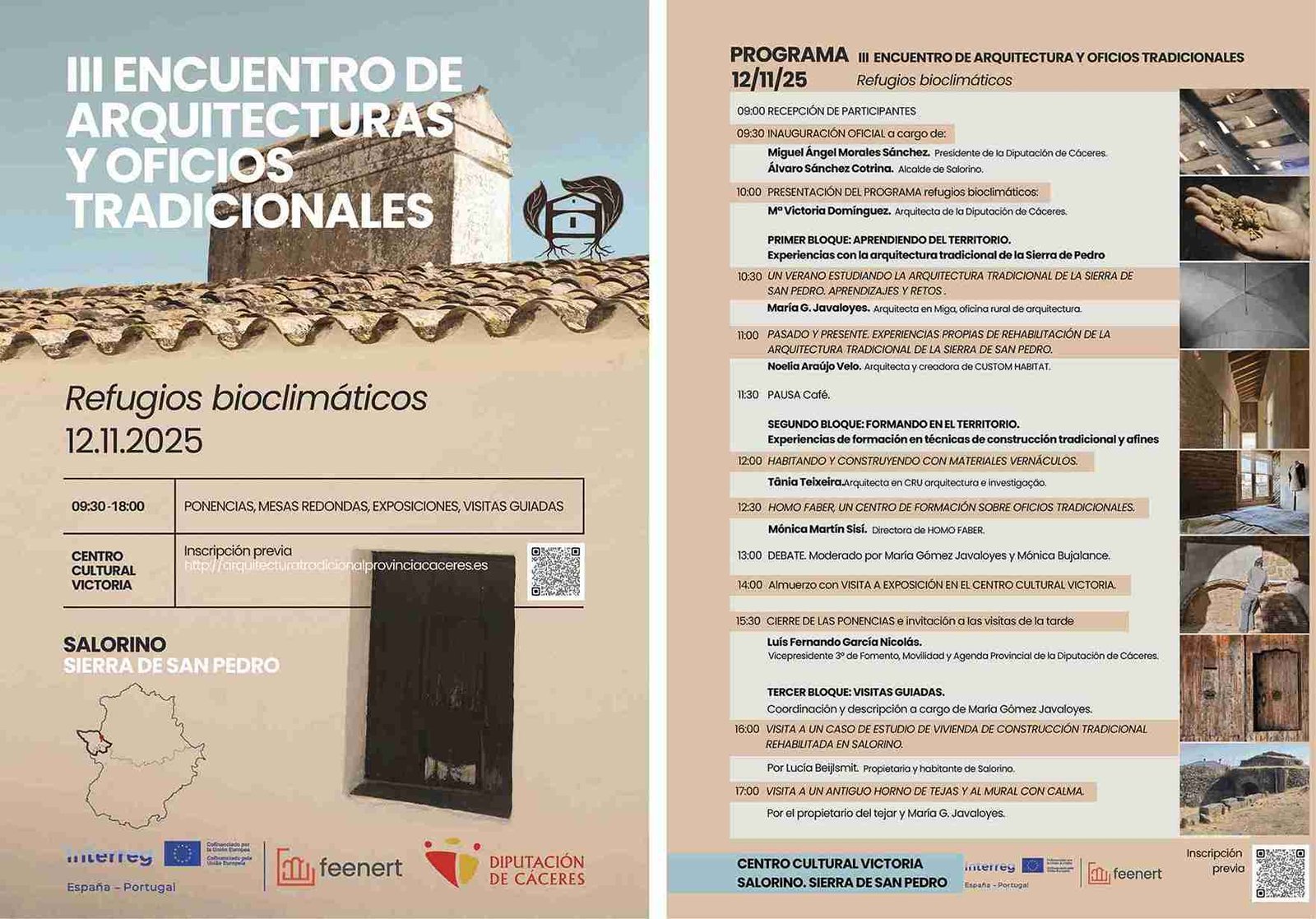 El próximo 12 de noviembre de 2025 se celebrará en Salorino (Sierra de San Pedro) el III Encuentro de Arquitecturas y Oficios Tradicionales, bajo el lema Refugios bioclimáticos. El evento tendrá lugar en el Centro Cultural Victoria, de 9:30 a 18:00 horas, y reunirá a especialistas en arquitectura, construcción tradicional y sostenibilidad.
