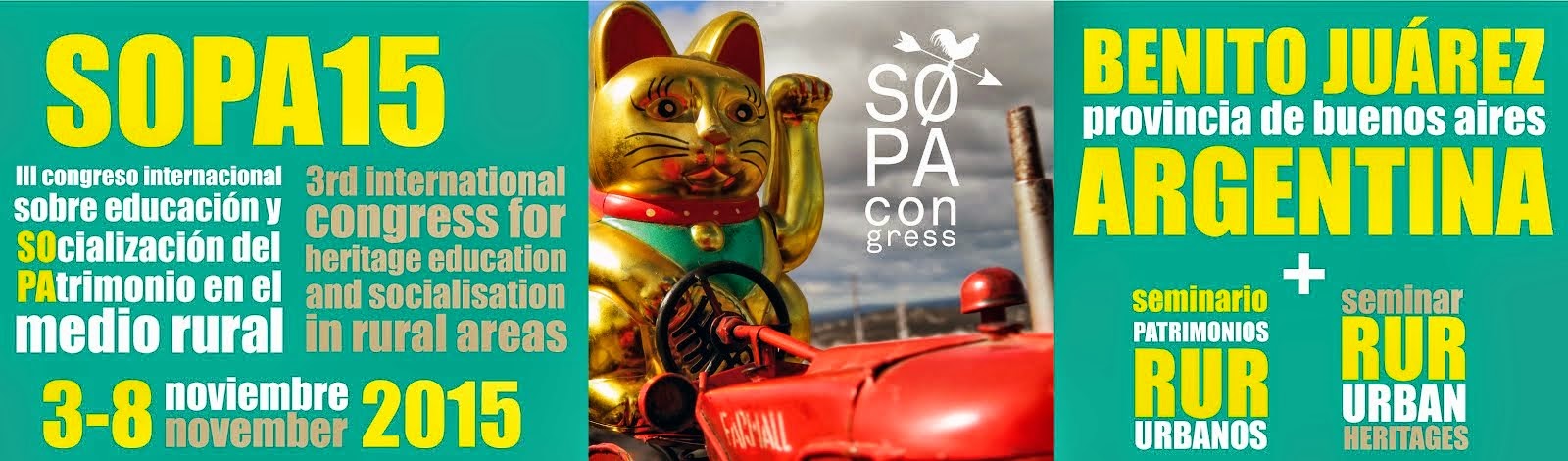El Patrimonio en el medio rural en general, se encuentra en una situación de desamparo administrativo en favor de un patrimonio urbano que se piensa más beneficioso a nivel económico. El medio rural contiene gran parte del patrimonio conservado y en peligro de desaparición, entendiendo éste como el conjunto de patrimonio construido e inmaterial de todas las cronologías y que forma parte de la historia y las narraciones locales. En esta edición, el congreso SOPA busca ser un foro de presentaciones tanto de agentes del área cultural como de aquellos cuya tarea no es específica de la misma, pero articulan sus acciones al patrimonio (maestros y profesores, agentes municipales e instituciones no gubernamentales, ciudadanos en general), y un lugar de conversación, exploración teórica y metodología donde experimentar y proponer mecanismos conjuntos de acción. Todo ello facilitará el conocimiento a nivel internacional del patrimonio cultural juarense en particular, y bonaerense y argentino en general, vinculado al medio rural y sus diferentes formas de gestión, haciendo hincapié en aquellas que incluyen la participación ciudadana en su desarrollo. Al mismo tiempo, se expondrán distintos proyectos desarrollados en otros lugares del mundo, lo que derivará en el conocimiento de nuevas formas de trabajar en lo rural que podrían adaptarse en nuestro país.
